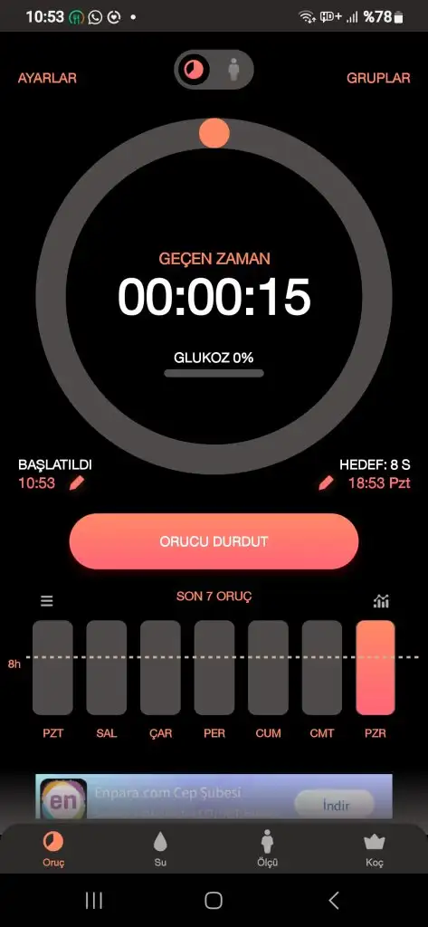 Direnç kilom 55 di kırılınca vücut takır takır goturdu kiloyu neyse kahvaltımı etdim 8 saat ara açlık için surecide başlattım akşam 7 gibi proteinli bir öğün yapacağım