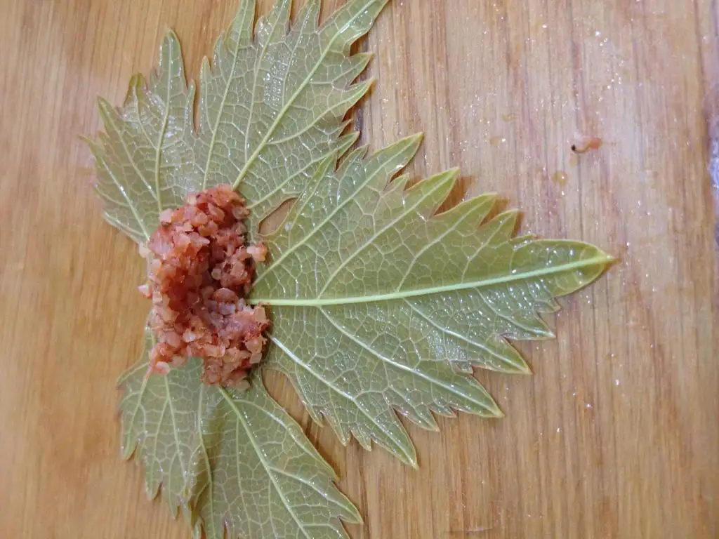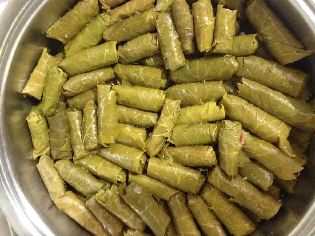 bizde,kuşbaşı etli yaprak sarması tek lokmalık kare kare olur