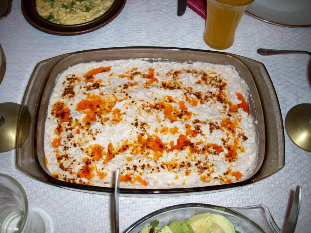 Tavuk göğüs etlerini bir tencere içinde üzerini geçecek kadar su , tuzu da ilave edip iyice haşlayın. Haşlanan tavuk etlerini soğuduktan sonra büyük bir cam kase içine didikleyin. Ekmek içini ilave edin, sarımsakları dövüp ekleyin, kornişon turşuları küp küp doğrayıp ekleyin, karabiberi yoğurt ve mayonezi, cevizi ekleyip iyice karıştırın. Yoğun bir karışım olması lazım sulu gibi olmuşsa ekmek içi ilave edebilirsiniz.