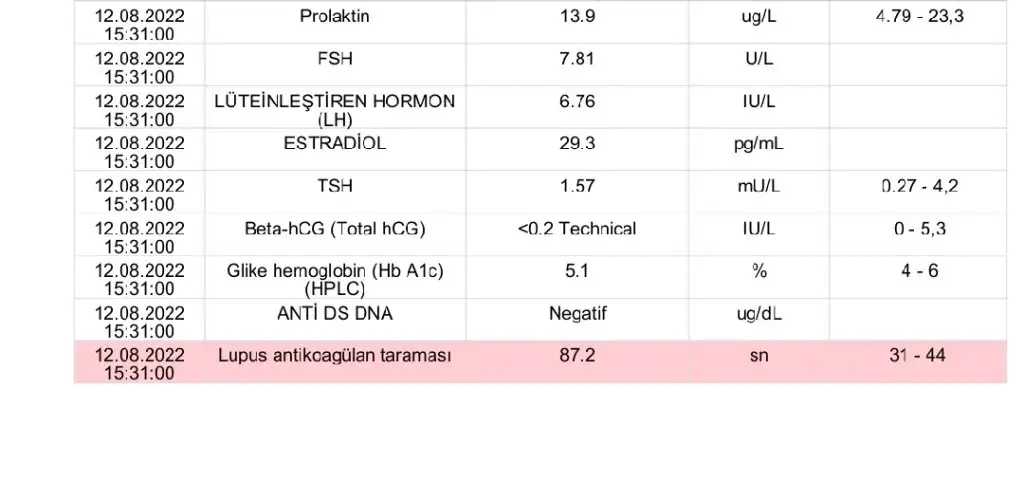 Merhaba benim de Lupus antikoagülan değerim yüksek çıktı ve pozitif sonuçları göstermek icin gün bekliyorum araştırirken sizi gördün son durumunuz nedir nasil bir yol izlediniz gebe kalabildiniz mi
