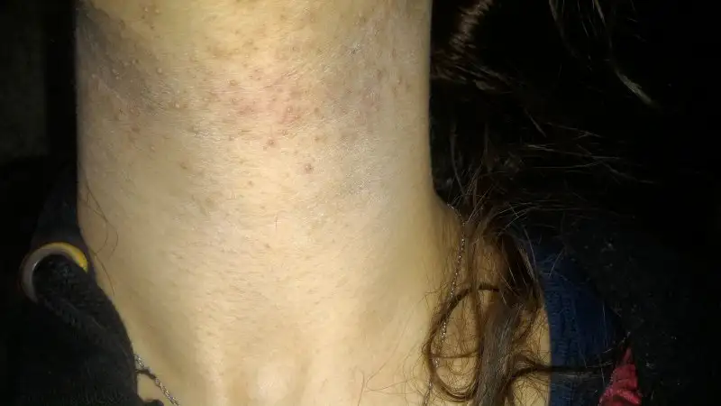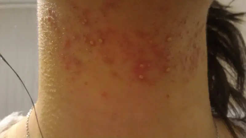 Kızarmalarım normalmi gerçekten bu 5.gün fotoğrafım ve sivilceler hala var iltihaplı gibi of çok kötü çalışıyorum ve şalla kamufle etsemde canım çok sıkılıyo bi arkadaşım noldu boynuna dedi cok utandım