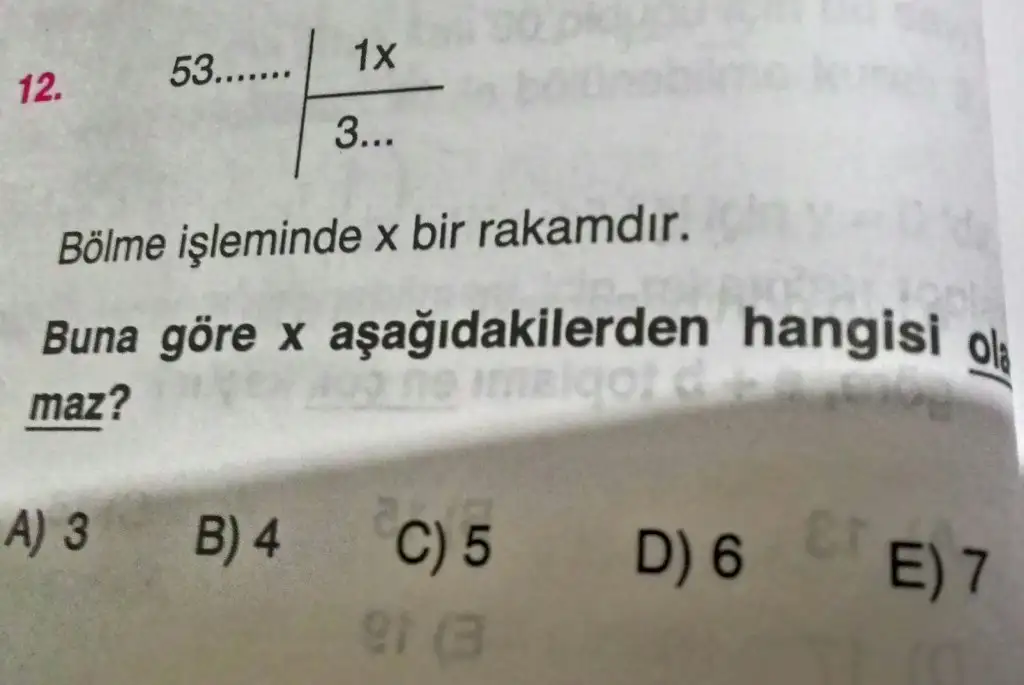 anladım canım çok teşekkürler45 i çarpanlarına ayıracağız 9.5 bunları 13 kaldığına göre 13 5 e bölündüğünde kalan 3 9 a bölümünden kalan 4 son rakamı 5 e bölümünden 3 kalsın diye 3 ve 8 olur sayıları toplayınca da 9 dan kalan 4 olsun diye de xin yerine 3 ve 7 yazabiliriz