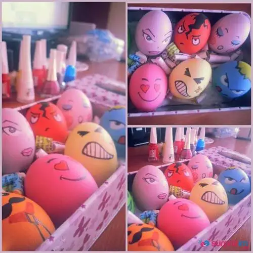 yumurtayı azcık bi deldim içini boşalttım kurumasını bekledim kuruduktan sonra güzelce ojelerle boyadım şekil verdim istediğimi yaptım yumurtaya içinede not koydum nasıl fikir