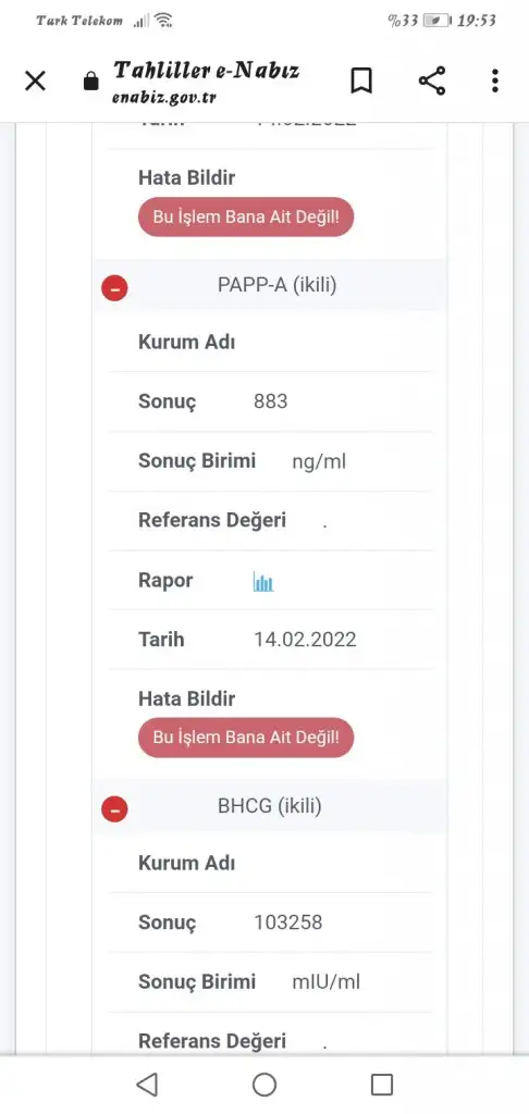 İkili test rapor ektedir yazmışlar bilmediğim ve bakamadığım için hastaneye de gidemediğim için değerlerim normal mi bilmiyorum bilen biri yardımcı olabilir mi?