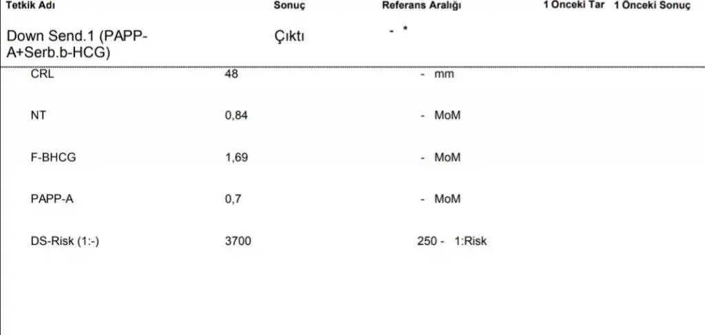 Herkese merhaba, ikili tarama kan sonuçlarım aşağıdaki gibidir. Doktor randevuma henüz çok var aranızda anlayan varsa yorumlayabilir mi?