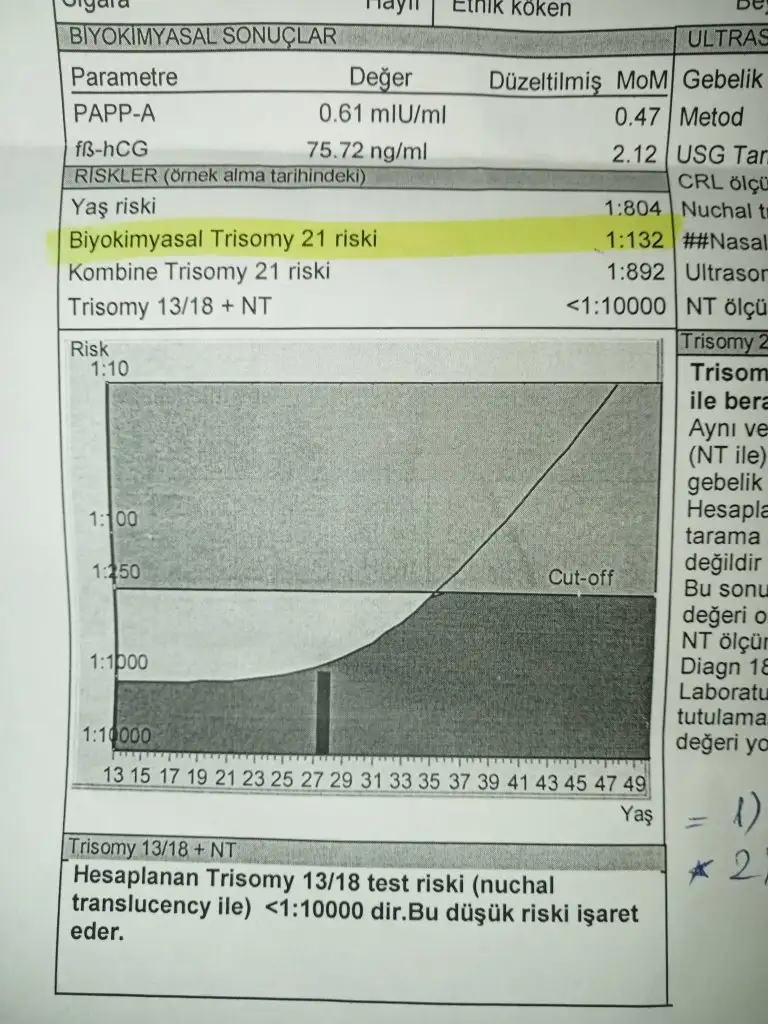 Bu sadece olasılık bildiren bir test. Teşhis fetal dna ile olur. Bence onu yaptırın rahat bir hamilelik geçirin böyle kafanızda hep soru işareti kalır