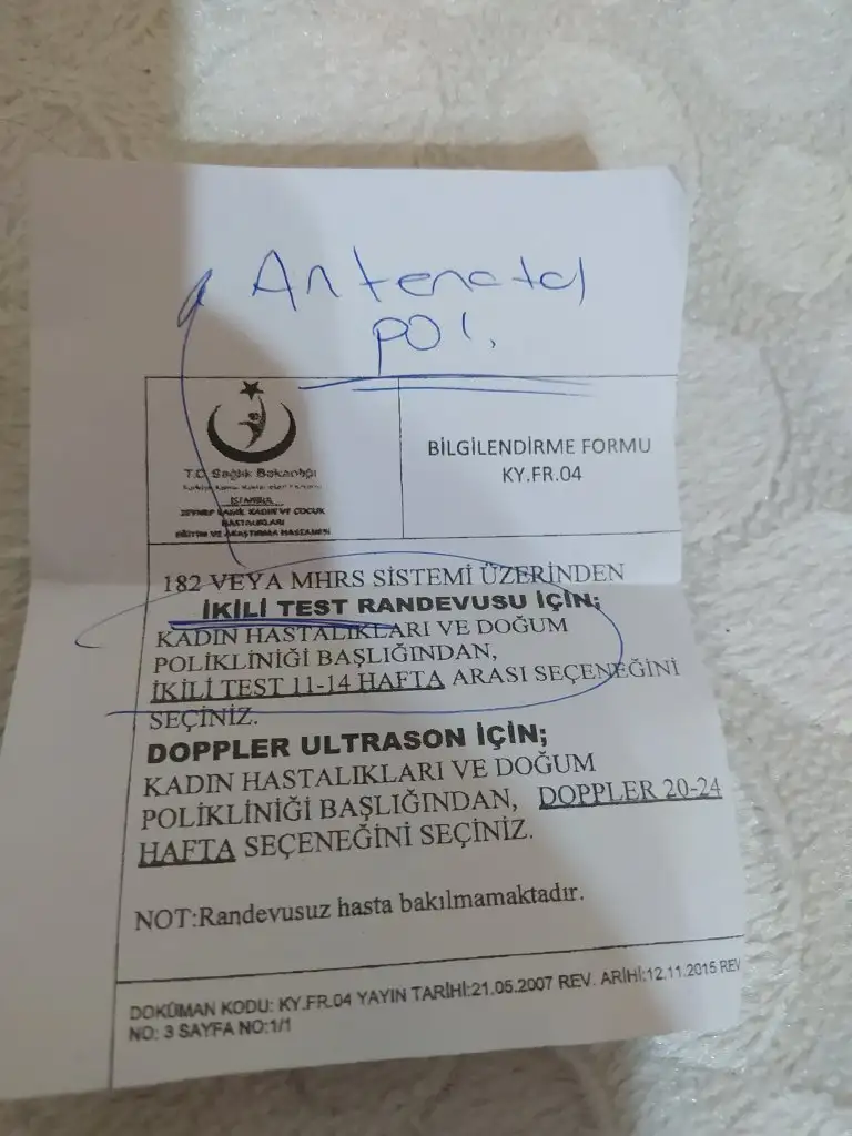 11+3 günlük hamileyim ikili tarama testine hiçbir gün yok sistem ful kapalı doktora söyledim bı kağıt verdi oradsn randevu al başka bı bölüm sanırım ama orda da bulamadım bı randevu nasıl randevu ala bilirim