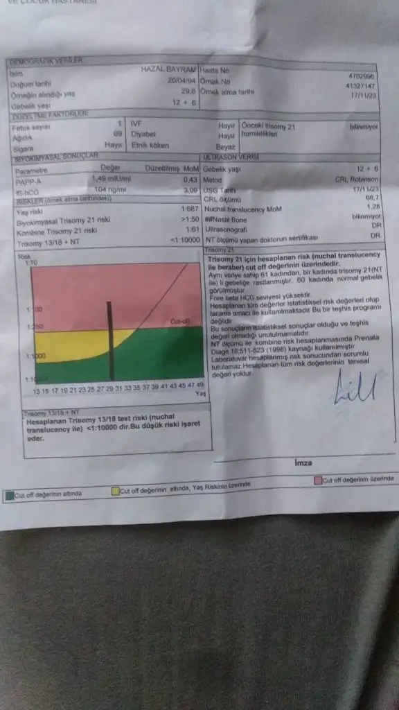 Merhaba arkadaşlar ikili tarama testi oldum bu risk yüksek mi düşük mü yardımcı olurmusunuz çok tedirginim lütfen 😪
