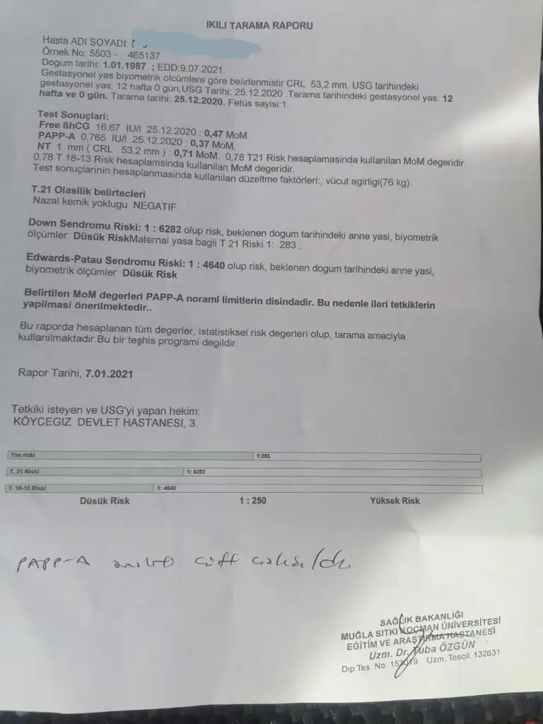 cook tesekkur ederim. cok sevindim sizin sonuclarinizin, bebisin saglikli olmasina ❤ doktorumu degistirmek zorunda kaldim. cok iyi bi doktor buldum devlet hastanesinde. her muayenemde sanki ozel hastasiymisim gibi en az 20 dk ilgilenip her kontrolde bebisin parmagina kadar kontrol ediyor. o doktorum ikili test sonucumda riskimin cok dusuk oldugunu soyledi ama pop a ve mom degeri dusuk oldugu icin tedbir amacli beni perinatoloji bolumune sevk etti. dun oraya gittim. o doktor bayaaaa bi canimi sıktı. muayene etmeden ikili teste bakarak pop a mom degerinden oturu ilerleyen haftalarda bebegin kalbinin durabilecegini soyledi. ayrica diger doktorumun aksine kromozomsal sorun olup down sendromlu olabilecegini soyledi. diger doktorum asla boyle dememisti. daha sonra ultrasona aldi beni. 20 dk kadar 2 doktor muayene ettiler. bebek cok hareketli oldugundan goruntu bile almakta zorlandilar. bobreklere kadar kontrol ettiler bebisin. hersey normal, guzel hicbi sıkıntı yok dedi. ben sizinle mi devam edecegim dedim, sonucta yuksek riskli gebelik uzmani. yooo niyeki dedi. e kalbi durabilir ilerleyen haftalarda dediniz dedim. yok gerek yok aksi durum gorurse doktorun muayene ederken fark eder ztn o zaman gonderir dedi. simdi o begendigim doktora gidecegim. bunlari anlatacagim. dunden beri canim sıkıldı kalbi durarsa diye uzuntuden harap oldum. ben anlamadim biri risk yok derken biri tam tersini soyleyip nasil insani harap ediyorlar