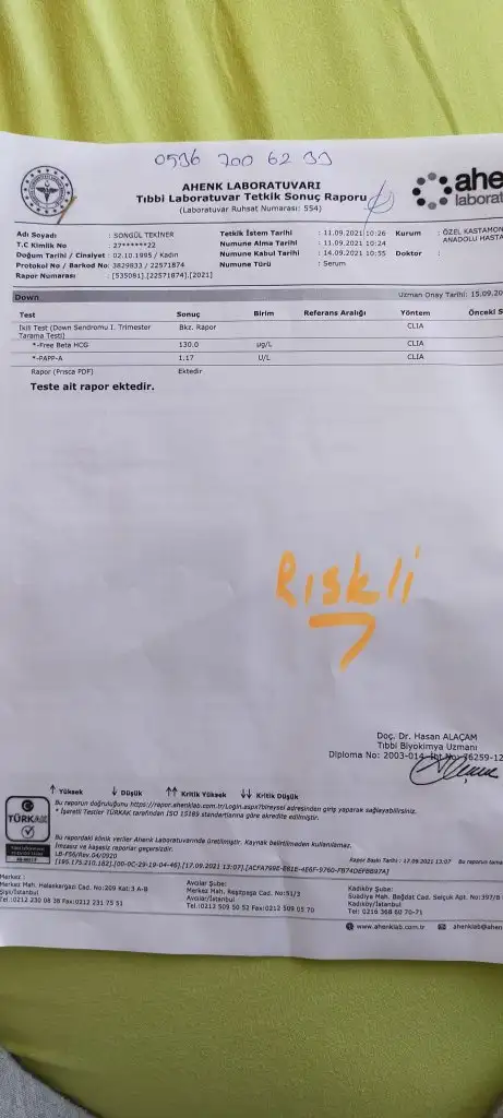 Benimde riskli çıktı. Biyokimyasal risk 202/1