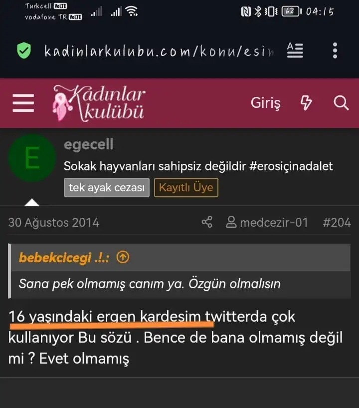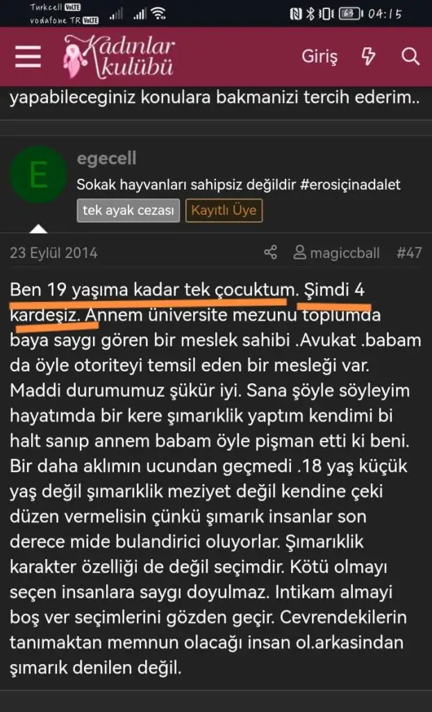 Derdiniz ne şimdi üyeler hakkında konu açmak yasak zaten yemediniz içmediiniz de bunu mu buldunuz yazık ne boş vakitlerDefnehan kendisinin eski nicki ve tüm paylaşımları oradan yapıp, ardından egecell'e dönmüş. Bu konularda da hayvanları savunan insanlara çatmış. :)))