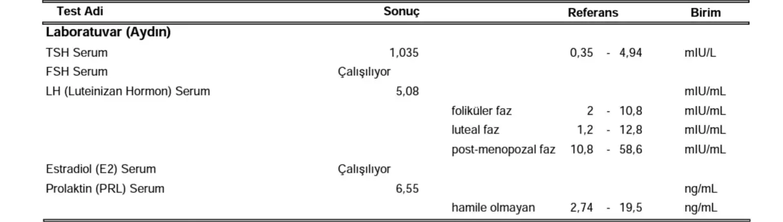 ASO yüksekti bir ara, bir antikor çeşidi, onun bile tekrarını yaptırmadım.