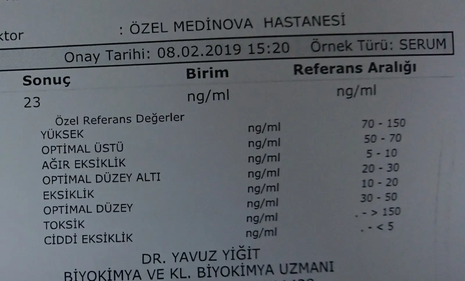 Vitamin testleri de aynı laboratuvarda yapıldı.