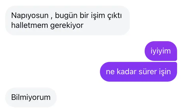 1 hafta önce bu adamla yine denk geldik hayatın gidişatını falan konuşurken kahve içecektik dedi ben de içeriz dedim. Beni tekrar eklemiş instagramdan ve 1 hafta günaydından akşamına kadar ara ara mesajlaştık. Hep ilk mesajları kendisi attı ilgilendi baya. Haftasonu boş muyum diye beni yokladı ve bugüne kendisi plan yaptı seni öğleden sonra alayım diye tamam dedim. Öğlen bir baktım mesaj atıp beni ekmiş. Ne doğru dürüst bir açıklama ne bir kusura bakma yok. Zaten kasıntı egoist görünümlü birisi bir de şunun üstüne egosundan emin oldum. lütfen dışarıdan bir göz olarak yorum yapar mısınız amaç nedir ?