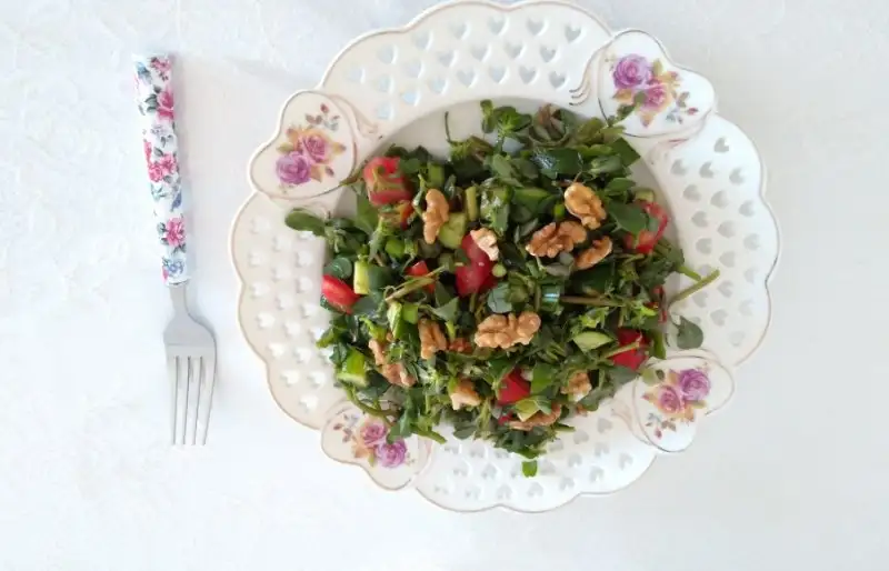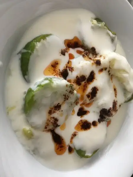 Içine cevizden başka , dereotu ve zeytinyağı da kattım, çok az da tuz.