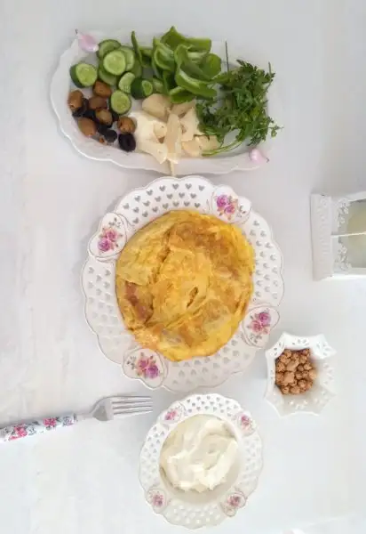 Pogacayla olur kiymali yada pattisli borekle olur