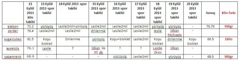 Ben bu kadar yiyip bu kadar spor yaptigimda en az 1 .5 kilo felan verirdim