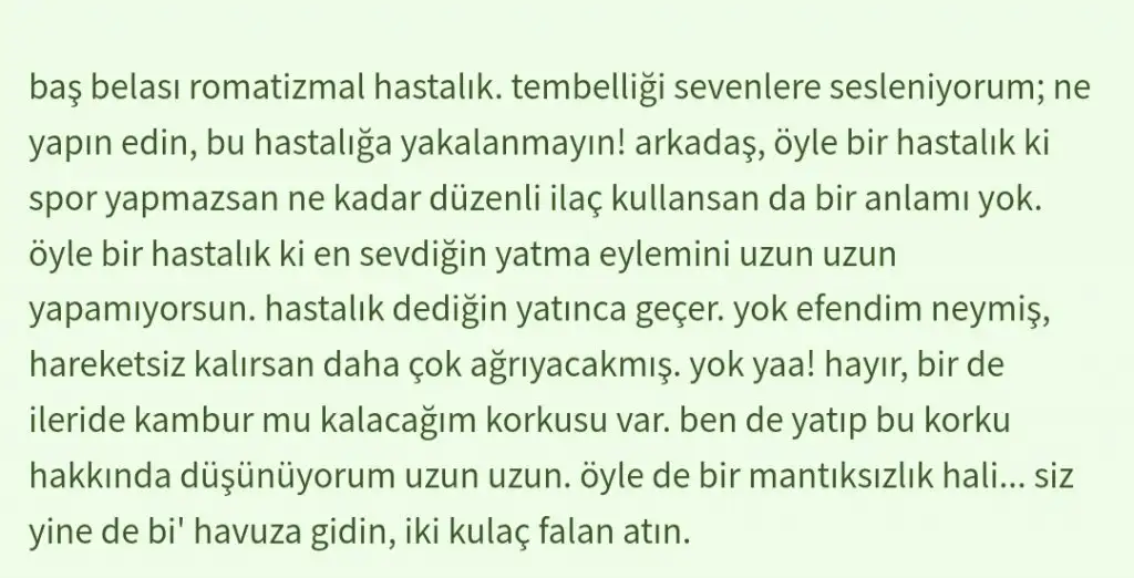 AA cemoşum sen de de mi varAz önce romatolojiden geldim.