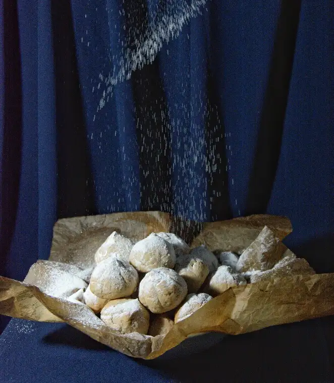 Fırından çıkan kurabiyeler soğumaya bırakılır ve üzerine pudra şekeri serpilip servis edilir (sıcakken asla serpmeyin yoksa erir).