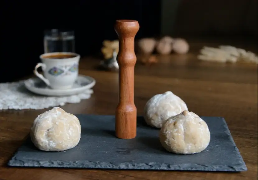 - Kurabiye hamurundan ceviz büyüklüğünde parçalar koparılır.