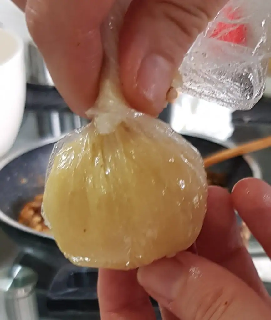 Tezgaha bir miktar streç film serelim, hamurdan ceviz büyüklüğünde bir parça alarak yuvarlayalım.