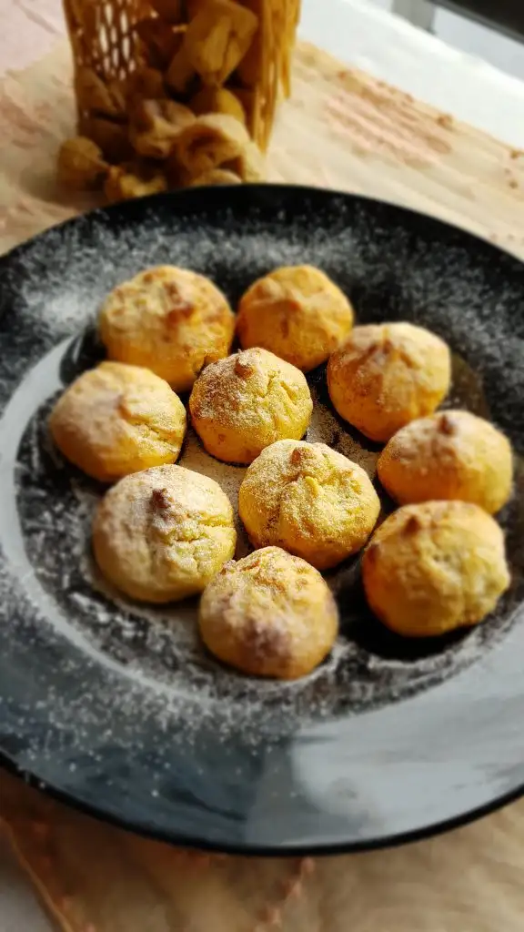 Pişen kurabiyelerimizin ilk sıcağı çıktıktan sonra üzerine pudra şekeri serpelim ve servis edelim.