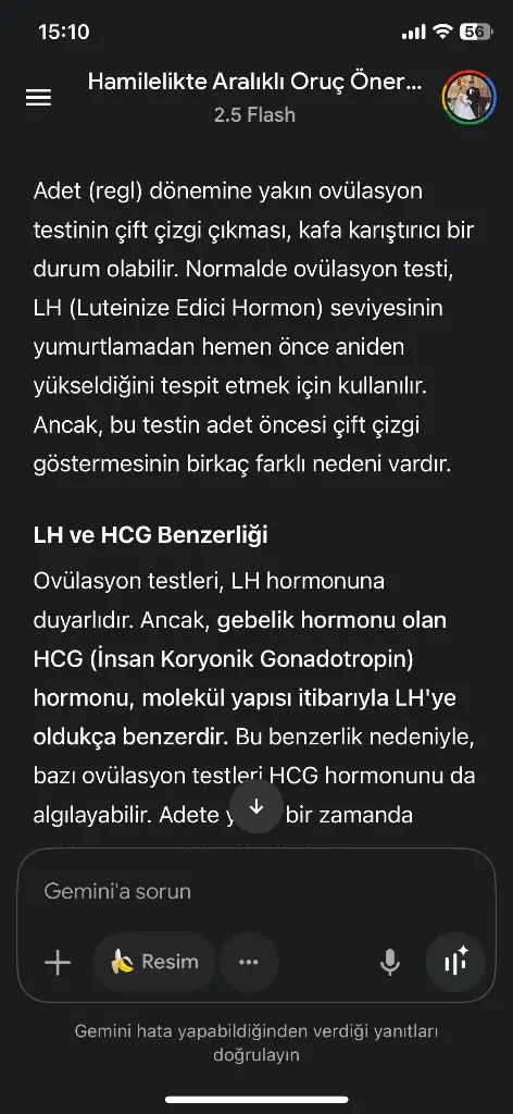 Ayyy cok iyi mantıklı en azından kist şüphem ortadan kalktı. Gebelik belirtim hiç olmayınca ihtimal vermemiştimde fakat bu lh durduk yere çift çizgi çıkarınca bende kist mi var yeniden mi yumurtluyorum diye düşünmüştüm.Bak yapay zeka ne diyor :)