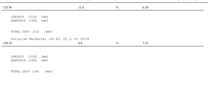 Bu arada kanda cd56 testim 11.4 çıktı. Referans aralık 4-29 arasıydı. Bana normal gelmişti ama burada yazılanlara göre %11 mi çıkmış oluyor..
