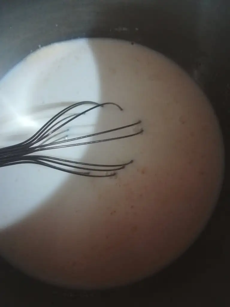 Tüm malzemeleri tencereye koyarak soğukken çırpıyoruz orta ateşte kaynamaya başlıyor