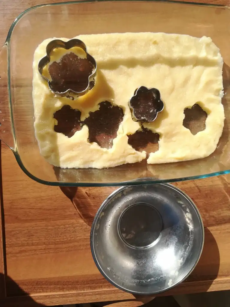 Düz borcam a koyduğum tatlıyı kalıplarla çıkarttım istediginiz kalıplarla istediğiniz şekillerde çıkarabilirsiniz