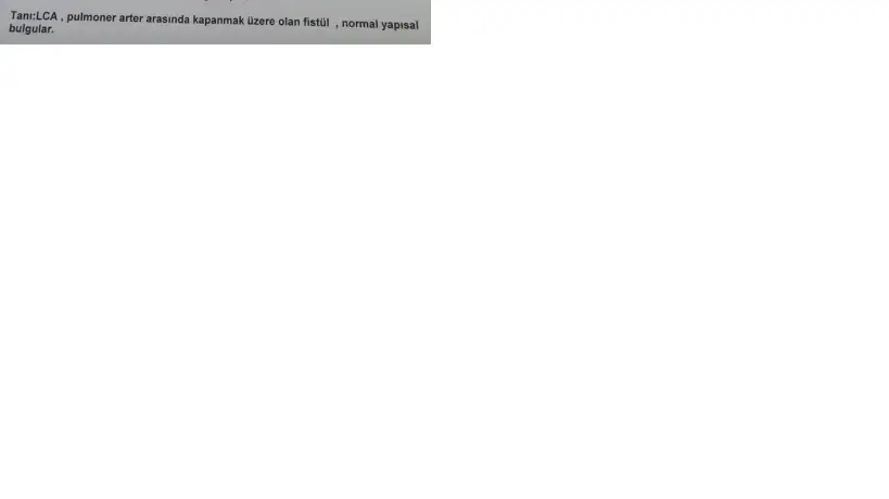 raporun tanı kısmı.LCA sol koroner arter demek, delinse hayat bitiyor, kalbi besleyen ana damar pulmoner arterle bağlantı kurmuş diyor.kaç tane makale okudum...tercümesi bu.Bakın uçlarda yaşıyorsunuz