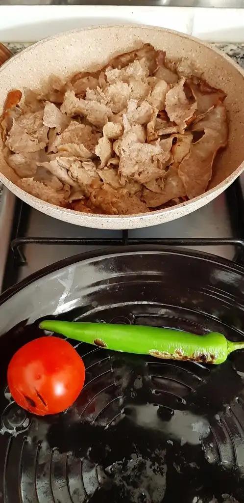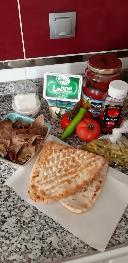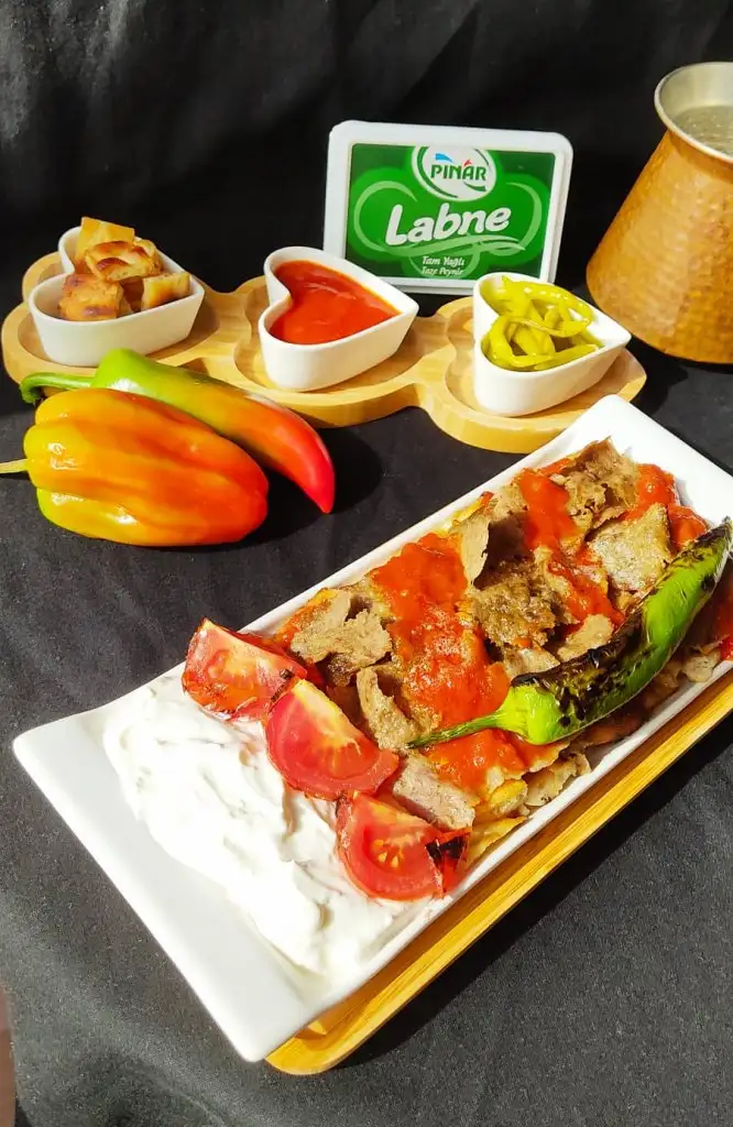Labneli yoğurtlu sosumuzu hazırlayalım, dönerimizi ısıtıp domates biberimizi közleyelim.