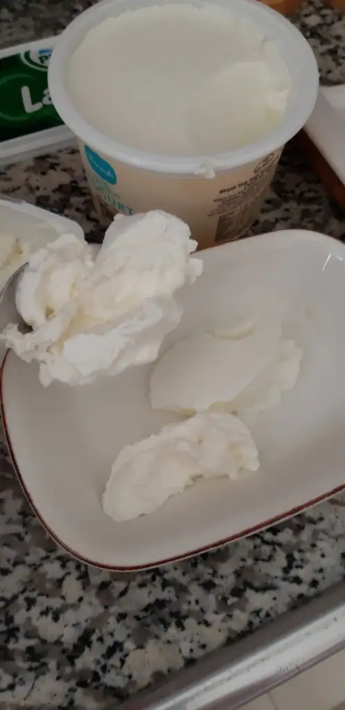 🍀1 yemek kaşığı yoğurt, 3 yemek kaşığı labne(karıştırıp tabağın kenarın koyuyoruz)