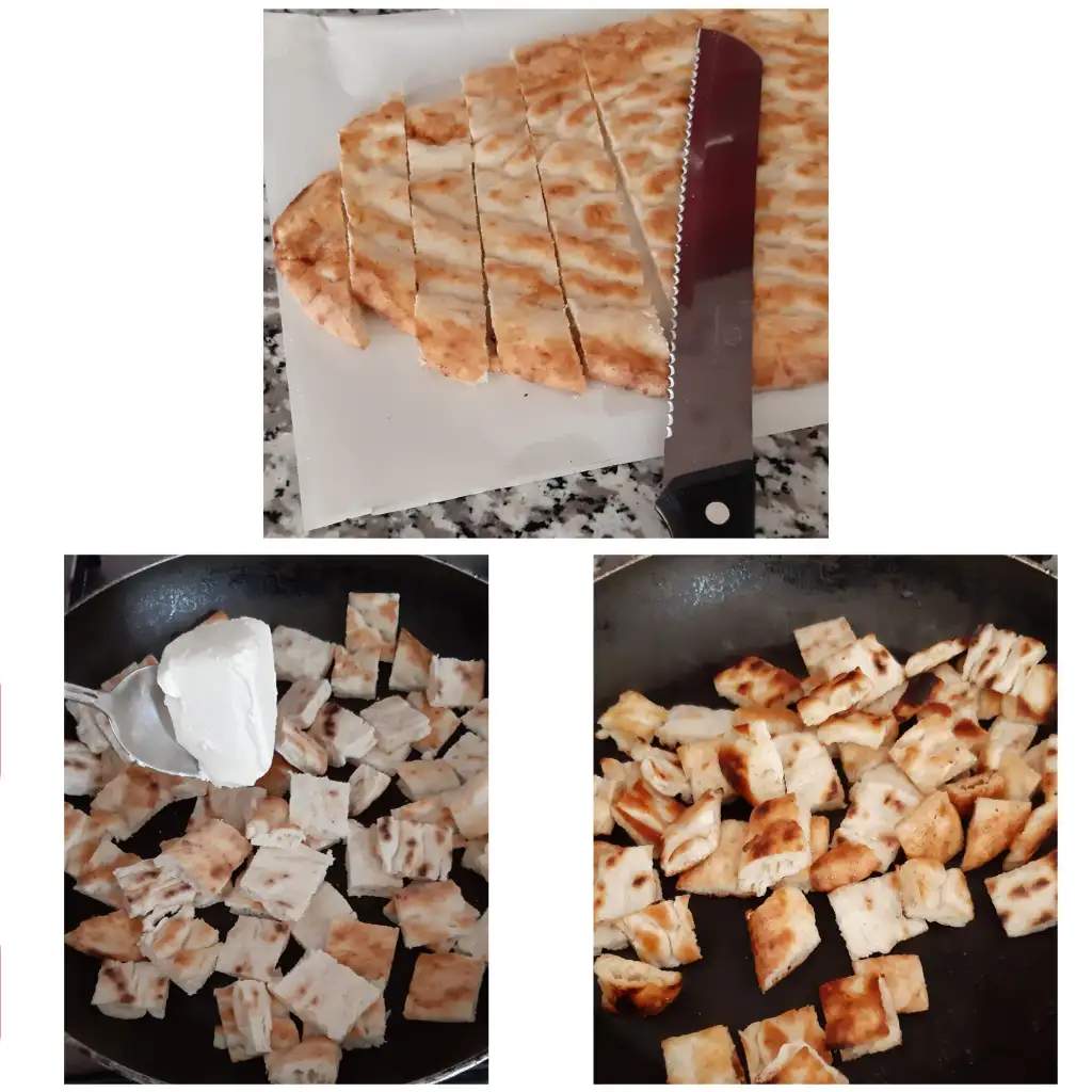 Pidemizi kare şekilde doğrayıp tereyağında kıtır kıtır olana kadar çevirelim.