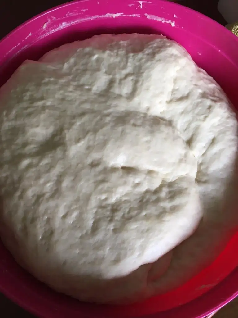 Un hariç tüm malzemeleri bir tencereye koyup, kısık ateşte sürekli karıştırarak ılıtalım (ısısı yoğurt mayalama sıcaklığına gelmemeli, serçe parmağımızla kontrol ederek ısı ayarını yapalım), hamuru yoğuracağımız kaba alalım. Unumuzu ekleyip, ele yapışmayana kadar yoğuralım ve 40 dk mayalanmaya bırakalım.