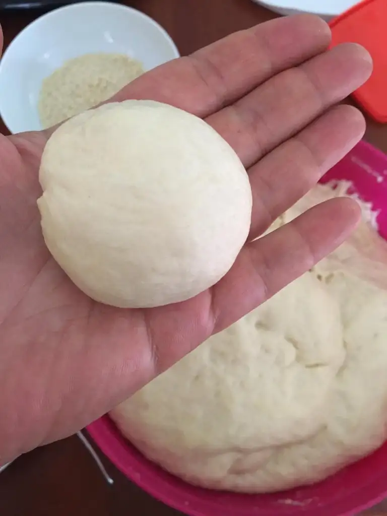 Mayalanan hamurdan mandalina büyüklüğünde parça koparıp, yuvarlayalım ve elimizde açalım.