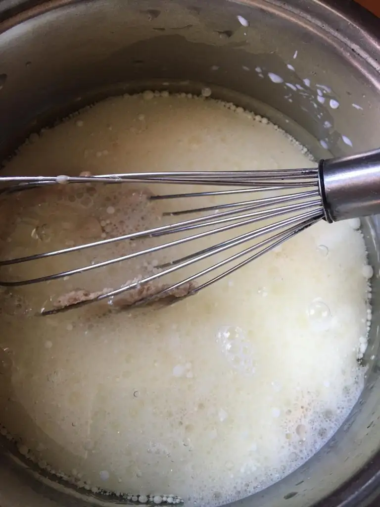 Bu arada sosumuzu da pişirmeye başlayalım. Küçük bir sos tenceresine tüm malzemeyi alalım güzelce çırparak pişirelim 5 dakika kaynadıktan sonra ocaktan alalım.