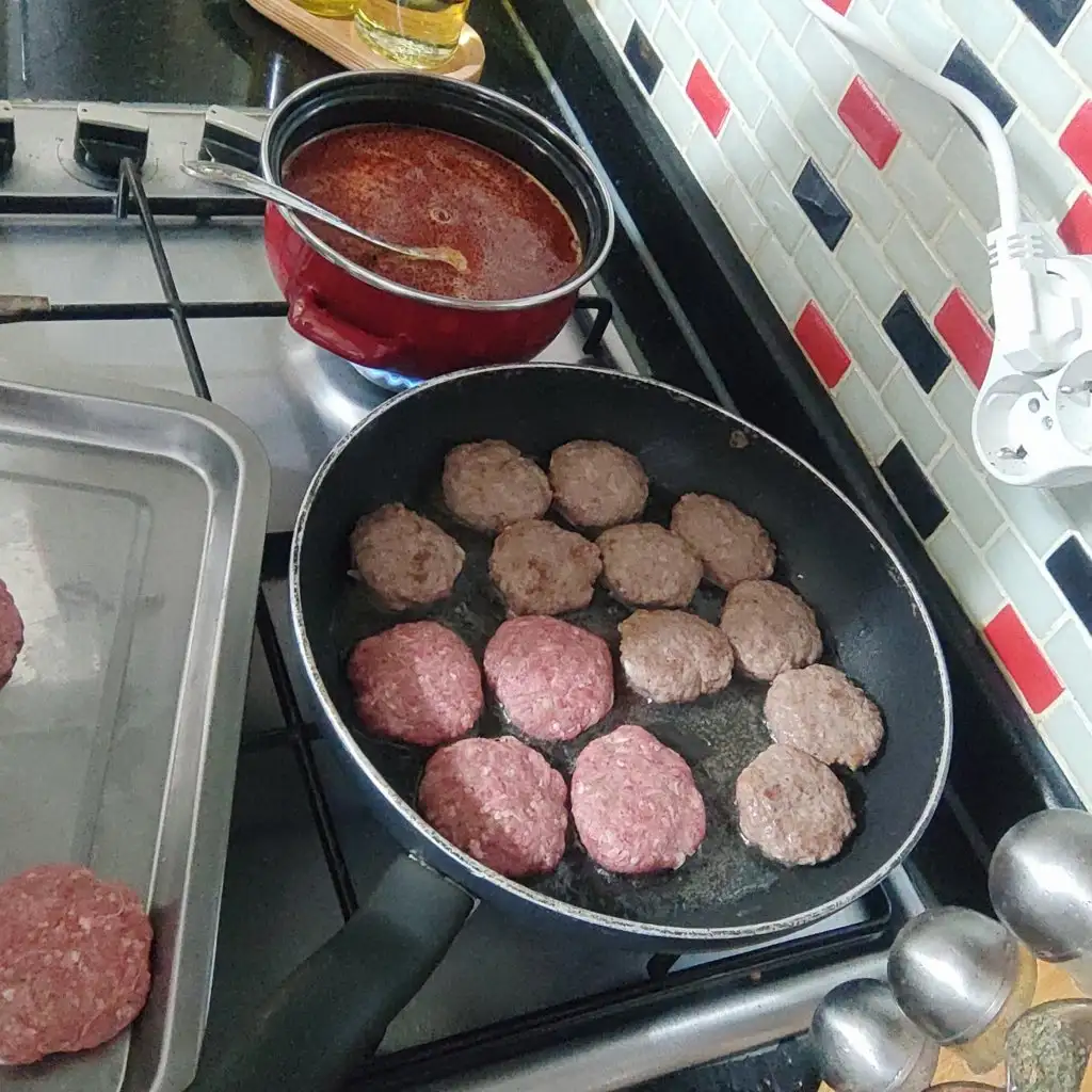 Köftelerimizi kızartıp, sosumuzu kaynatıyoruz.