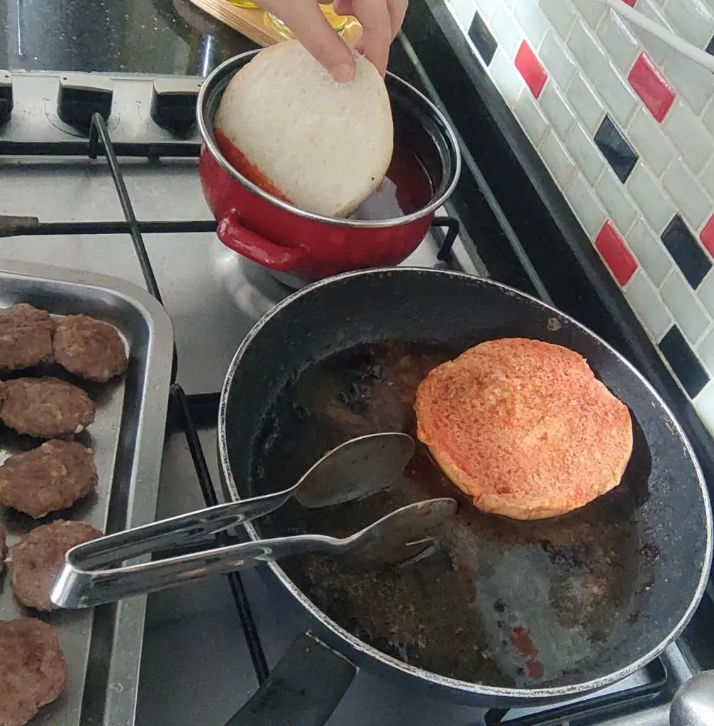 Bayat ekmek dilimleri(ben hamburger ekmeği tercih ettim yuvarlak formda istediğim için)