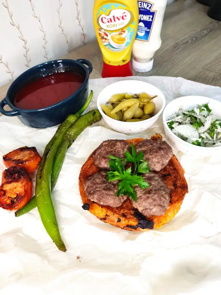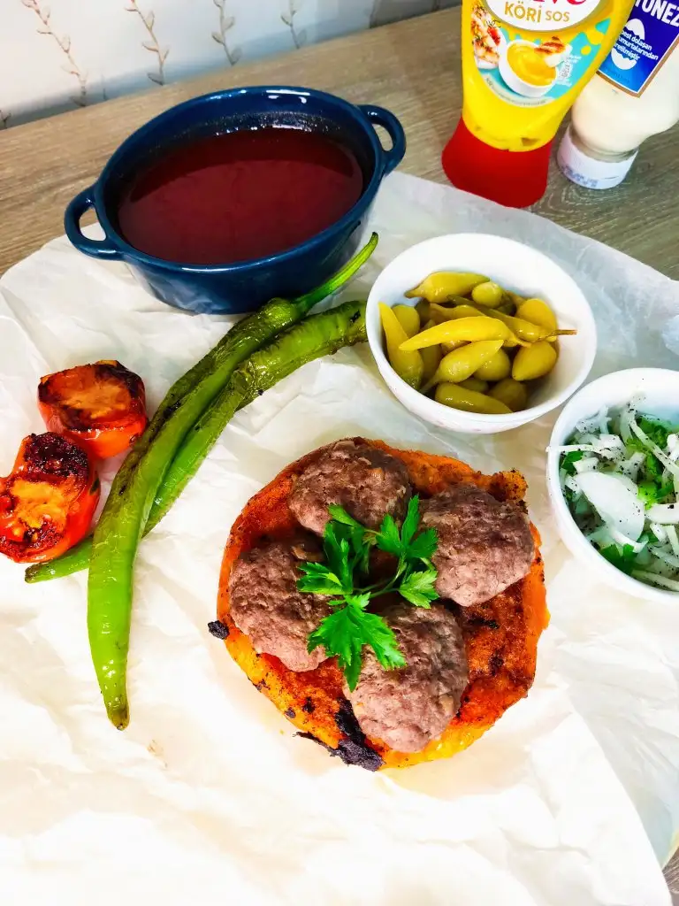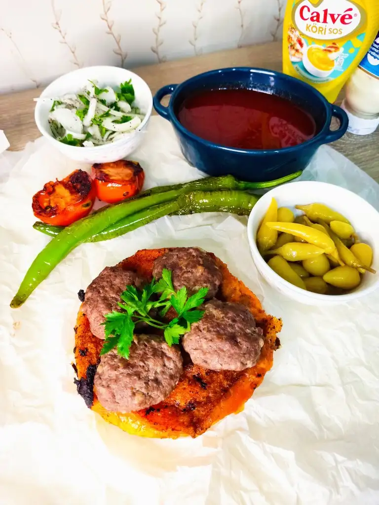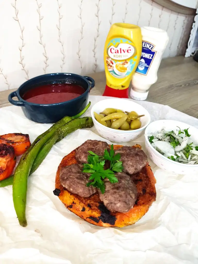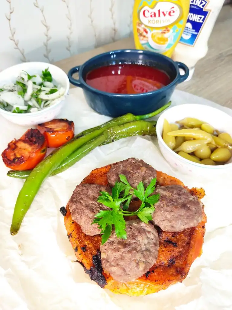 Süslemek için yanına biber, domates, soğan, turşu vs.kullandim.