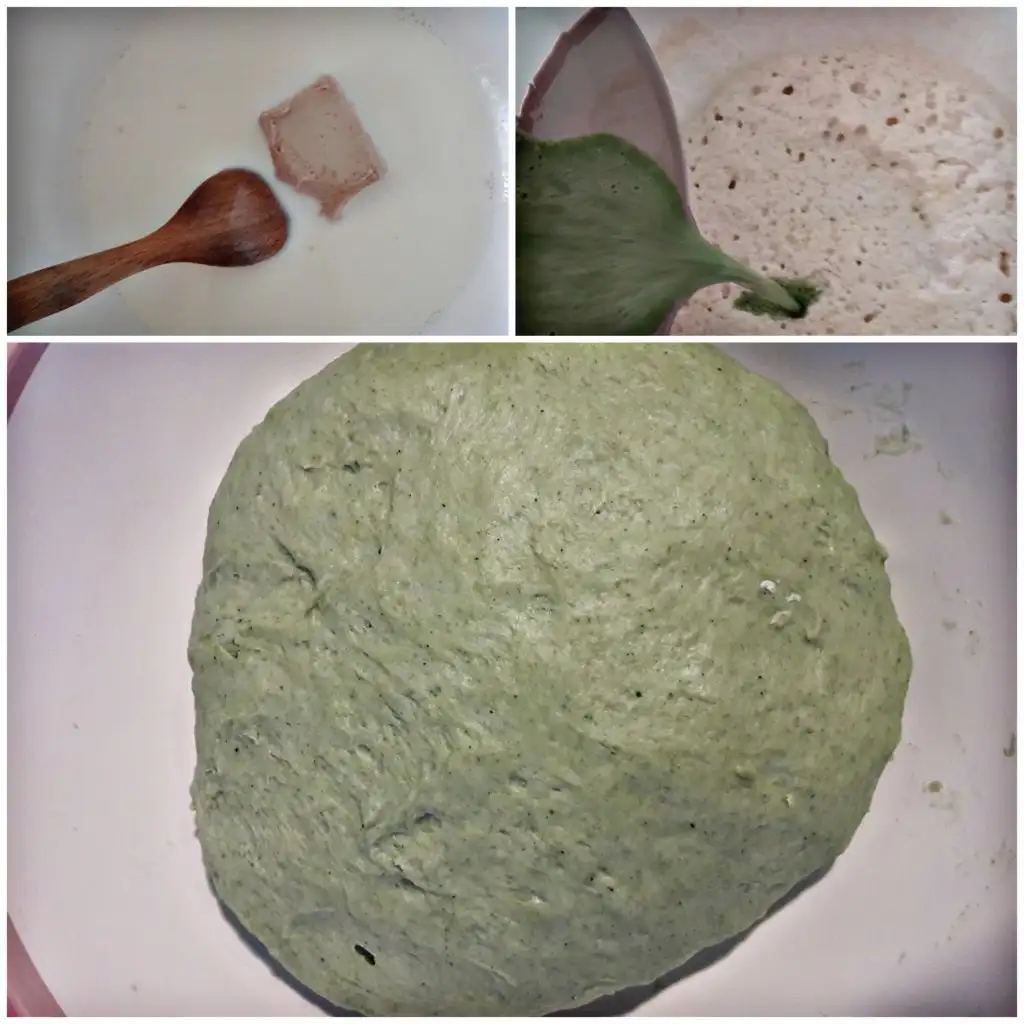 Haşladığımız ıspanak yapraklarının üzerine mayalı karışırımdan bir miktar dökelim ve robotla çektirelim. Oluşan yeşil karışımı kalan mayalı karışıma ilave edelim tuzu ve unu da yavaş yavaş ekleyip yoğuralım.