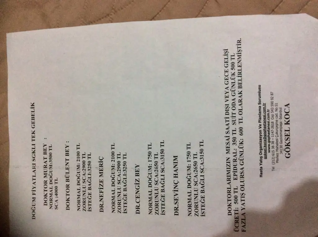 Hangi hastane bu?Benimde sezeryan 2800 dediler epidural olursa artı 350 ekleniyor oda parası ilk muayene anne bebeğin lohusa şerbeti süsü kuaförü hepsi içinde ters giden bişey olursa kalmak gerekirse ozaman oda parası ekleniyor