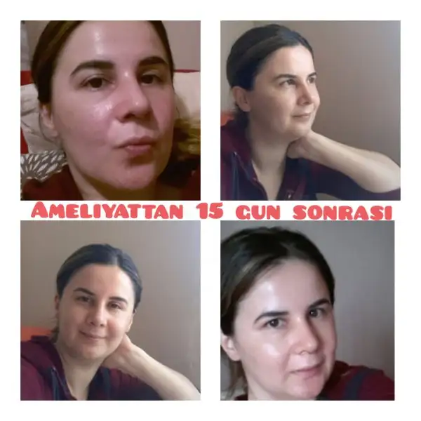 testlerım yapıldı hazırlandım ameliyat oldum. sorunsuz geçti ogun hastanede kaldım. buz maskesı taktılar 8-9 saat kaldı hiç şişmem morarmam olmadı benim. ertesı gun taburcu olurken benden sonra amelıyat olan bayanı gordum onun morarması vardı benı gorunce cok sasırdı 'sizde hıc bırsey yok' dıye