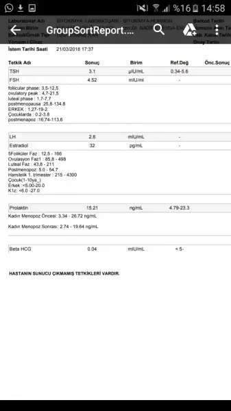 Bakalım . Cuma kan verdim hormon testi için. Yarında ultrason var. Kan sonucunuda yarın göstercem.Polipin olablir cnm o boyle kanama ve duzensizlik yapar demisti doktor muayenede onada bakarlar ins