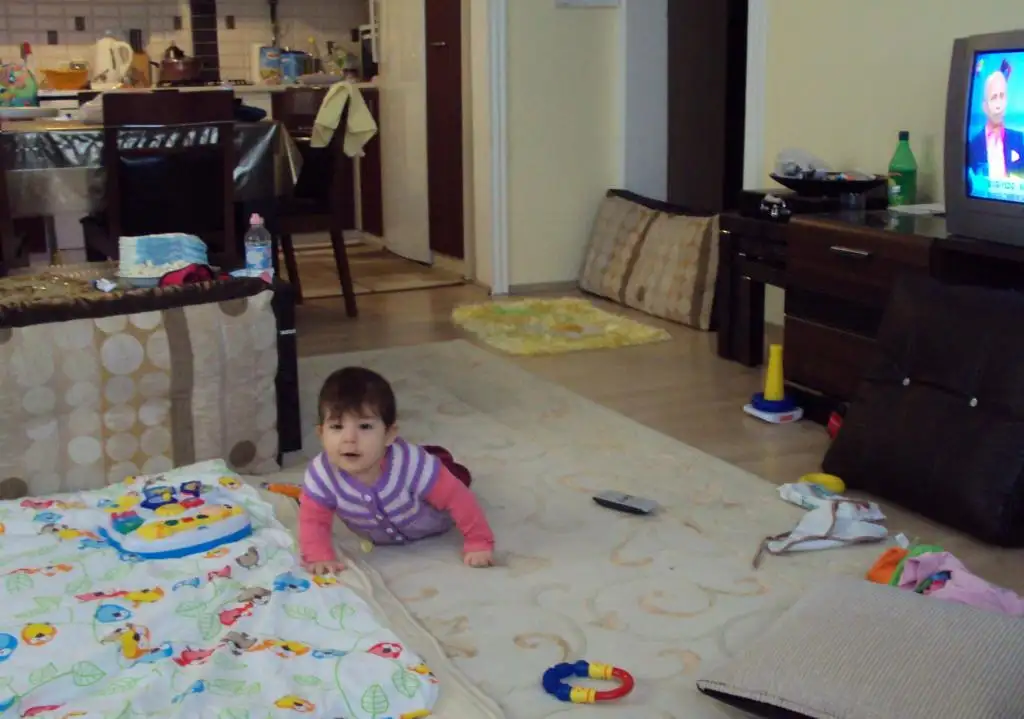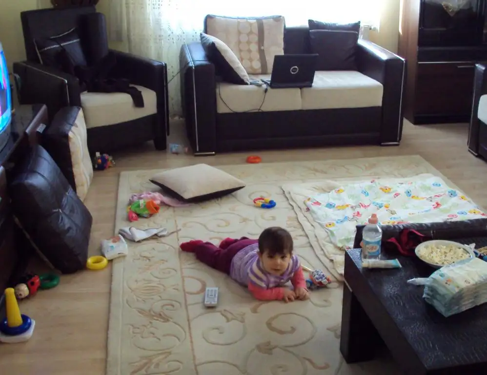 canım yaaa işin zor vallahi haman 2. ye başla ikisi bir çıksın vallahi yoksa daha zor herşeye sil baştanyok canım yaa tv sehpasının cam rafları var kafasını çarpıyo, sehpanın altına girip hızla bir kalkıyo kafayı çarpıyo salon kapısındanda çıkınca yerde ahşap süsler var kaldırmadım onları vuruyo yere birini kırdı bile valla daha çok minder olsa heryeri tıkayacam