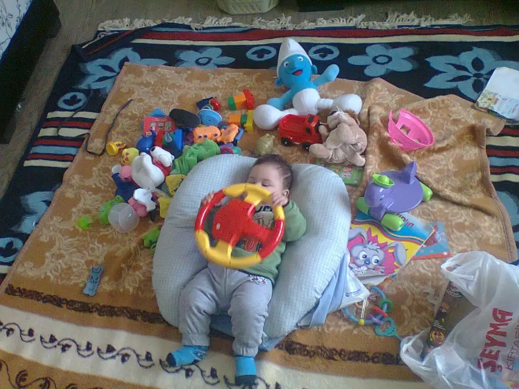 Bu benim salonun ortasınormalde orda yatan velet emeklediğinden oyuncaklar heryerde yeni oyuncağını tanırken geri kalanlar derli toplu toplu hali bu yani