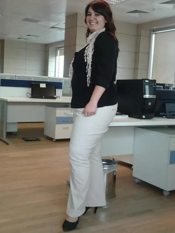 bi de zayiflamis halinde beyaz pantolon giymis, onun da etkisi vardir beyaz pantolon sisman gosteriyo baya