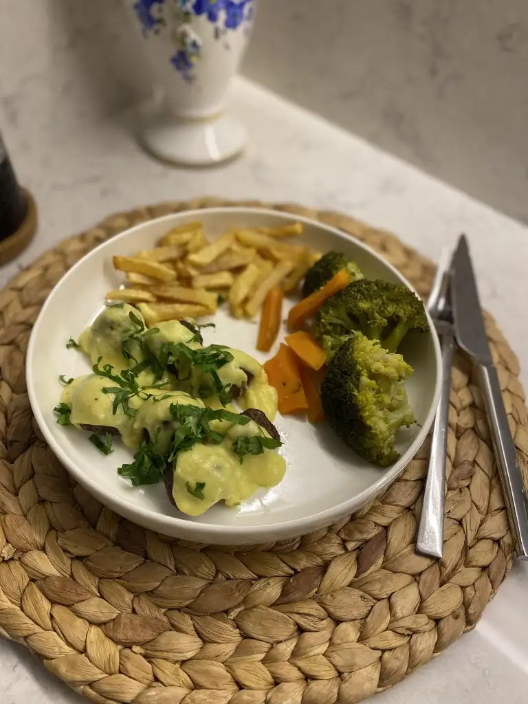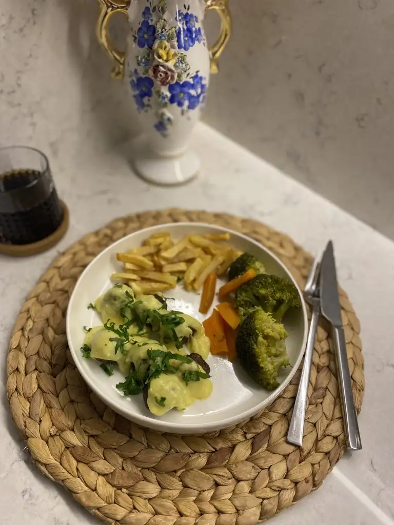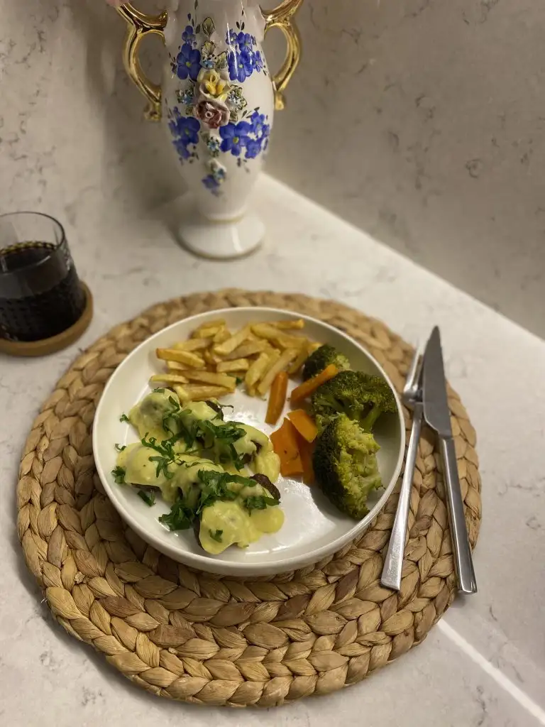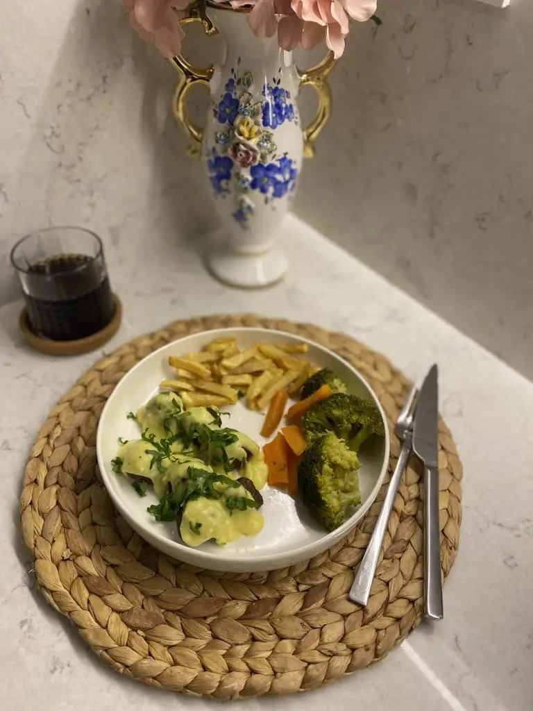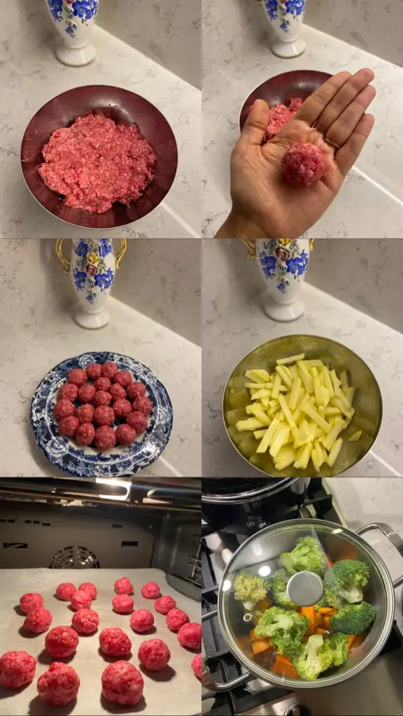 İsteğe göre yanına patates püresi brokoli havuç karnabahar haşlayabilirsiniz ama ben IKEA usulü patates kızartması ve brokoli haşlamayı tercih ettim .