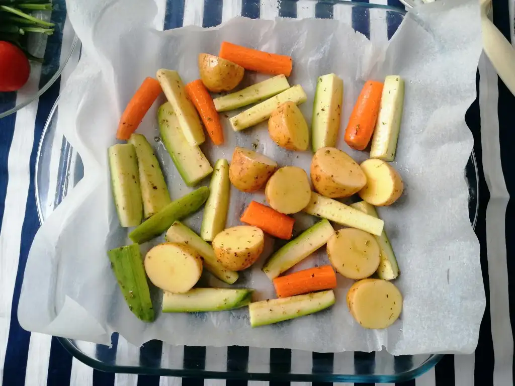 Tuz zeytinyağı ve kekik ekleyip yağlı kağıt serilmiş tepsiye dizelim.