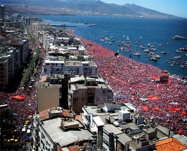 İzmir'de miting olur "Aydın'dan getirdi" derler, Aydın'da olur Denizli'den, Denizli'de olur Isparta'dan, Isparta'da olur Konya'dan, Konya'da olur Mersinden, Mersin'de olur Antalya'dan bindirilmiş kıtalar getirildiğini iddia ederler. "Abi gözlerimle gördüm. Arap yarımadasından otobüsle insan taşındı. Kıbrıs'tan gemilerle geldiler" diyen bıngıldak kafaya bile inanan çıkar